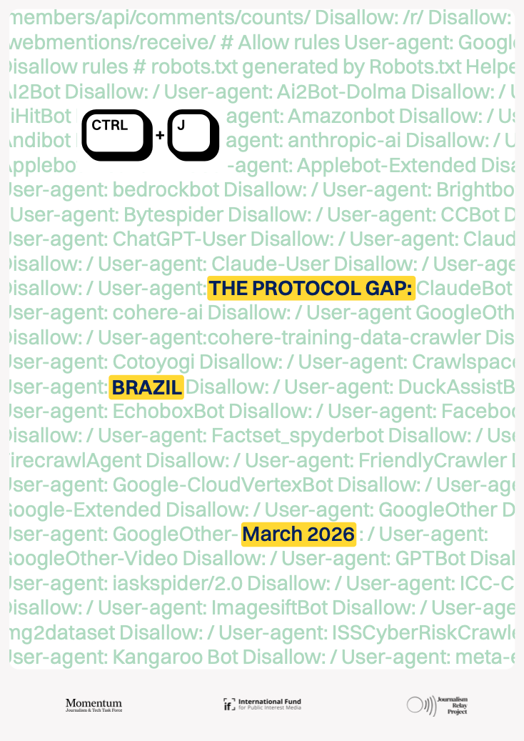 Produced by the Journalism Relay Project, Momentum - Journalism and Tech Task Force, and the International Fund for Public Interest Media, this first report is part of a broader research collaboration examining AI access to news content in Global South markets such as Brazil, Indonesia, and South Africa.